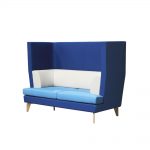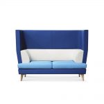 Sofa covered with Fabric or Leather. Legs in wood.