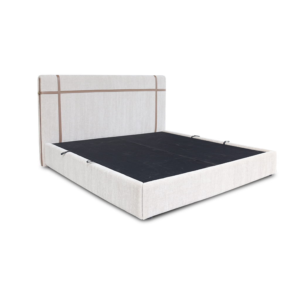 Bedframe Full Upholstery with Fabric Come with Leather Strap. Leg in Polypropylene.