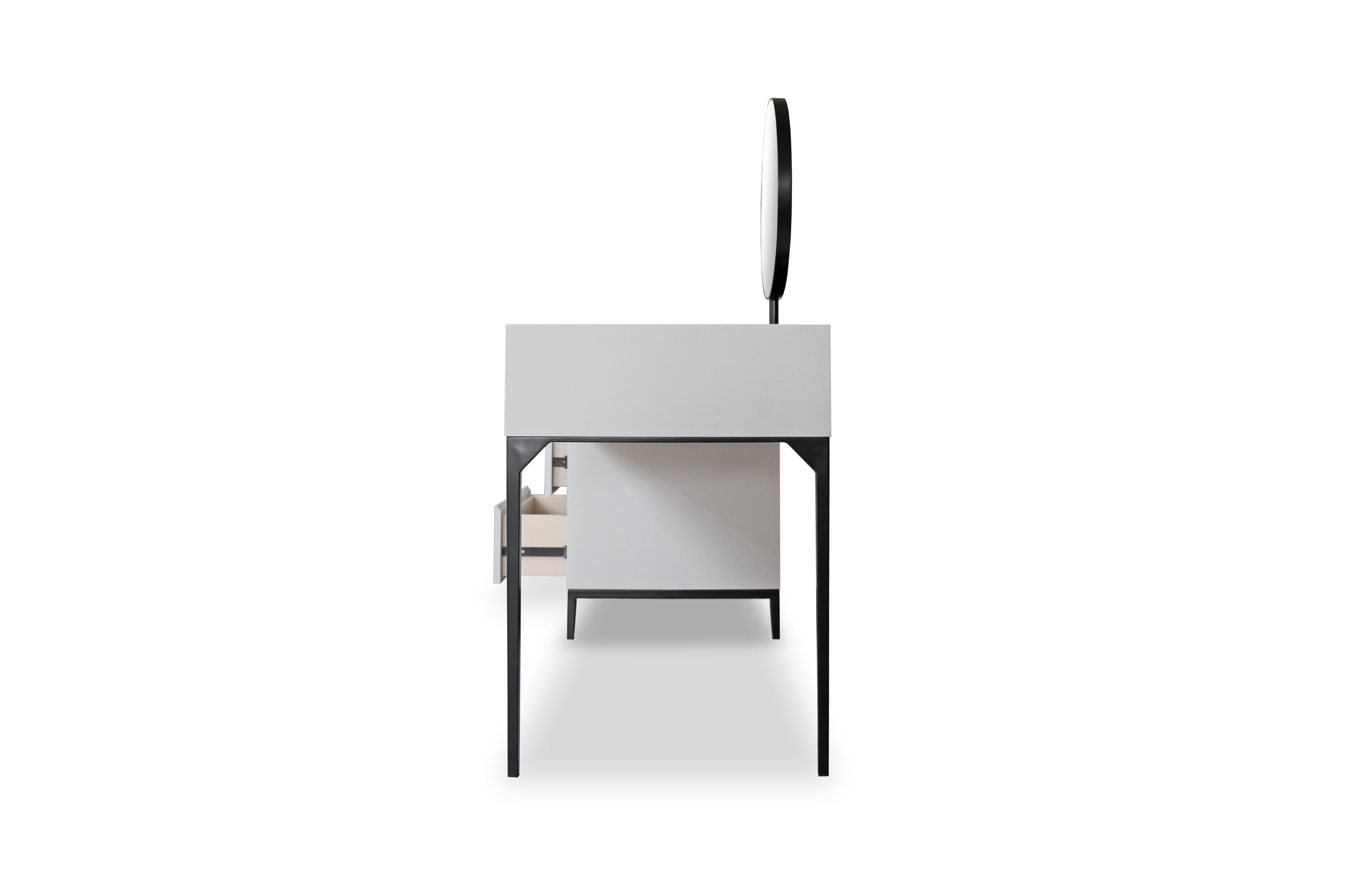 Frame in MDF Spray Paint . Leg in Mild Steel Epoxy black