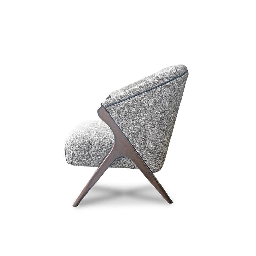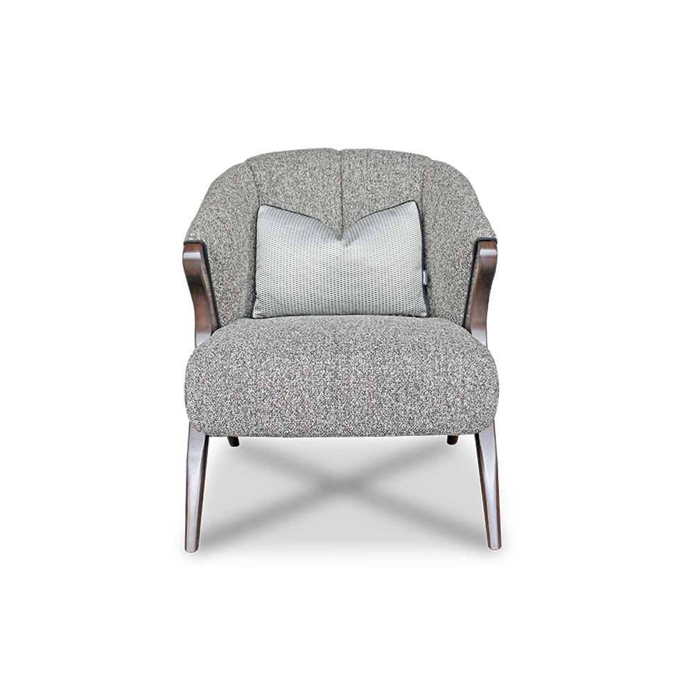 Armchair Upholstery with Fabric. Frame Leg in Selected Wood