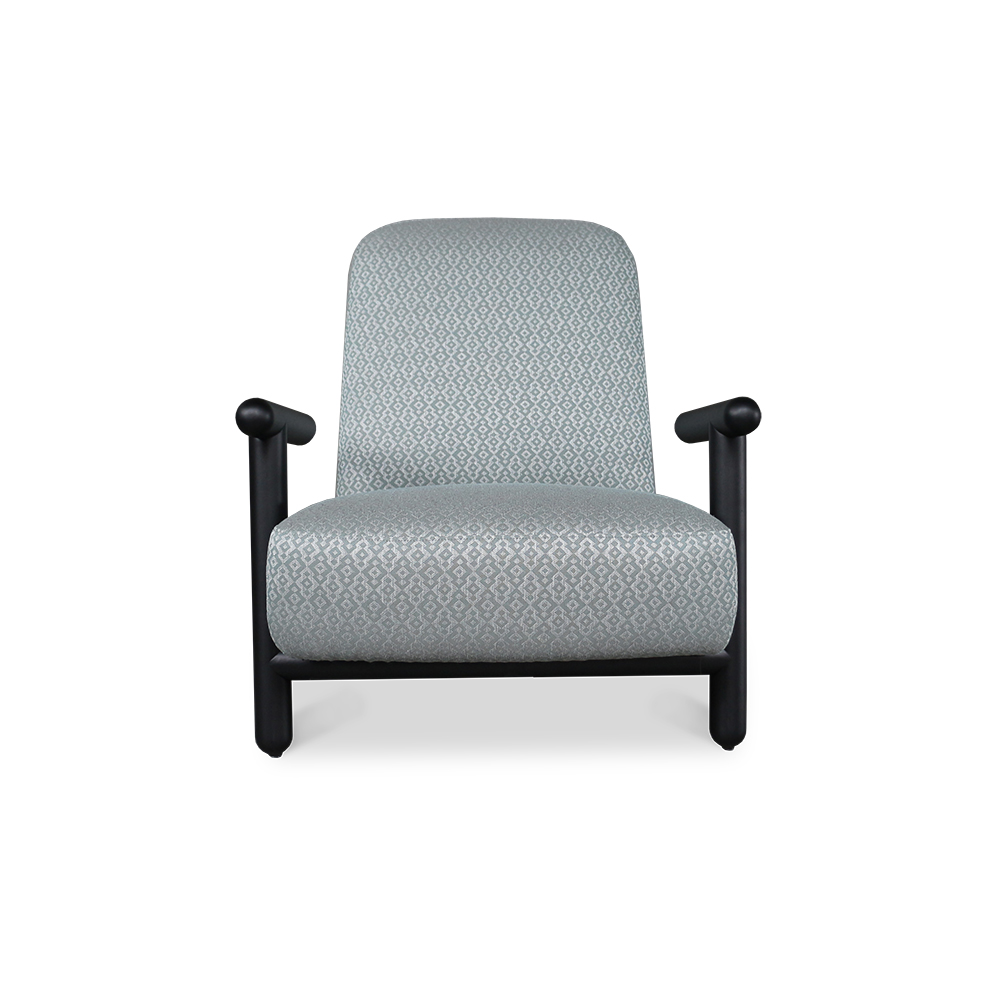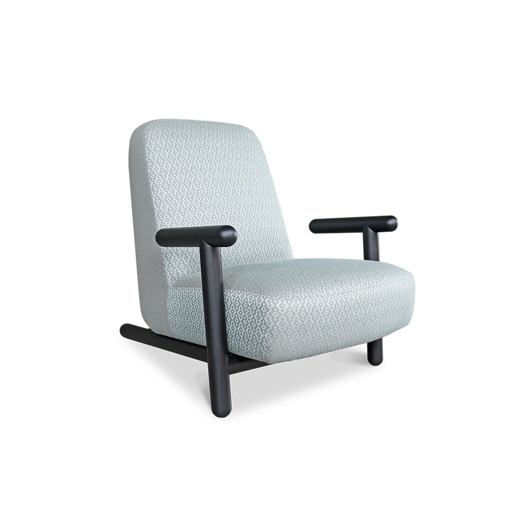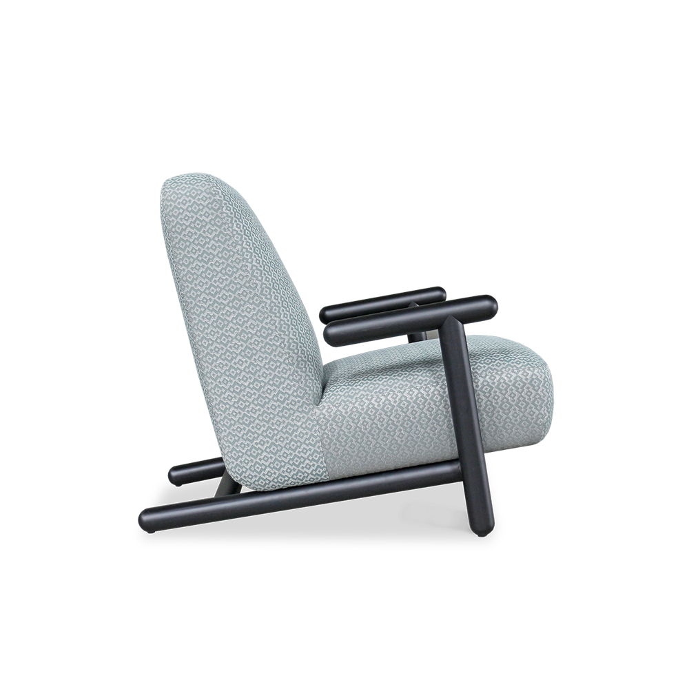 Armchair Upholstery with Fabric. Frame Leg in Selected Wood