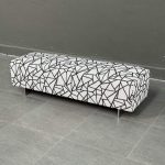 Bench upholstered in fabric with stainless steel legs