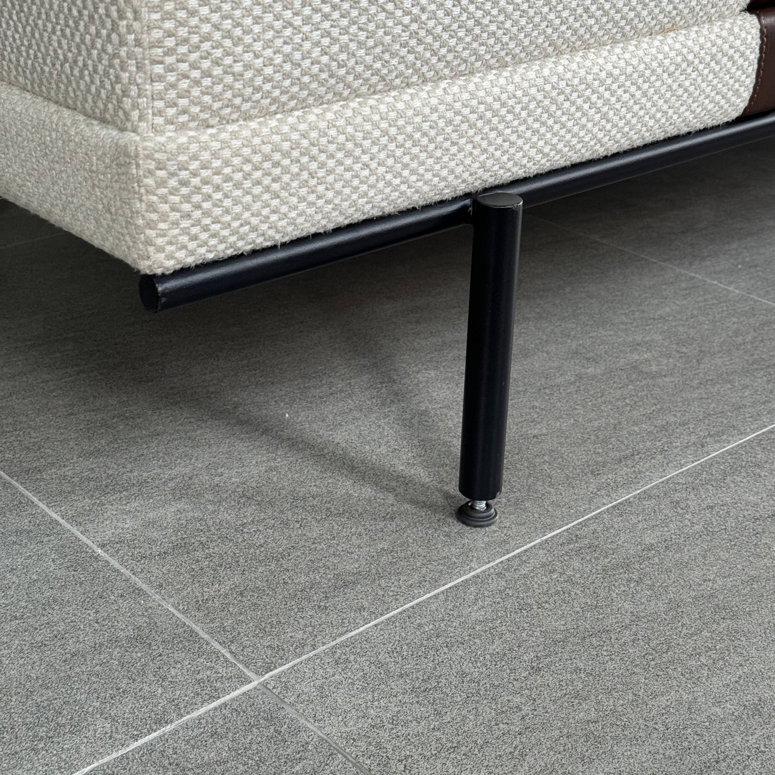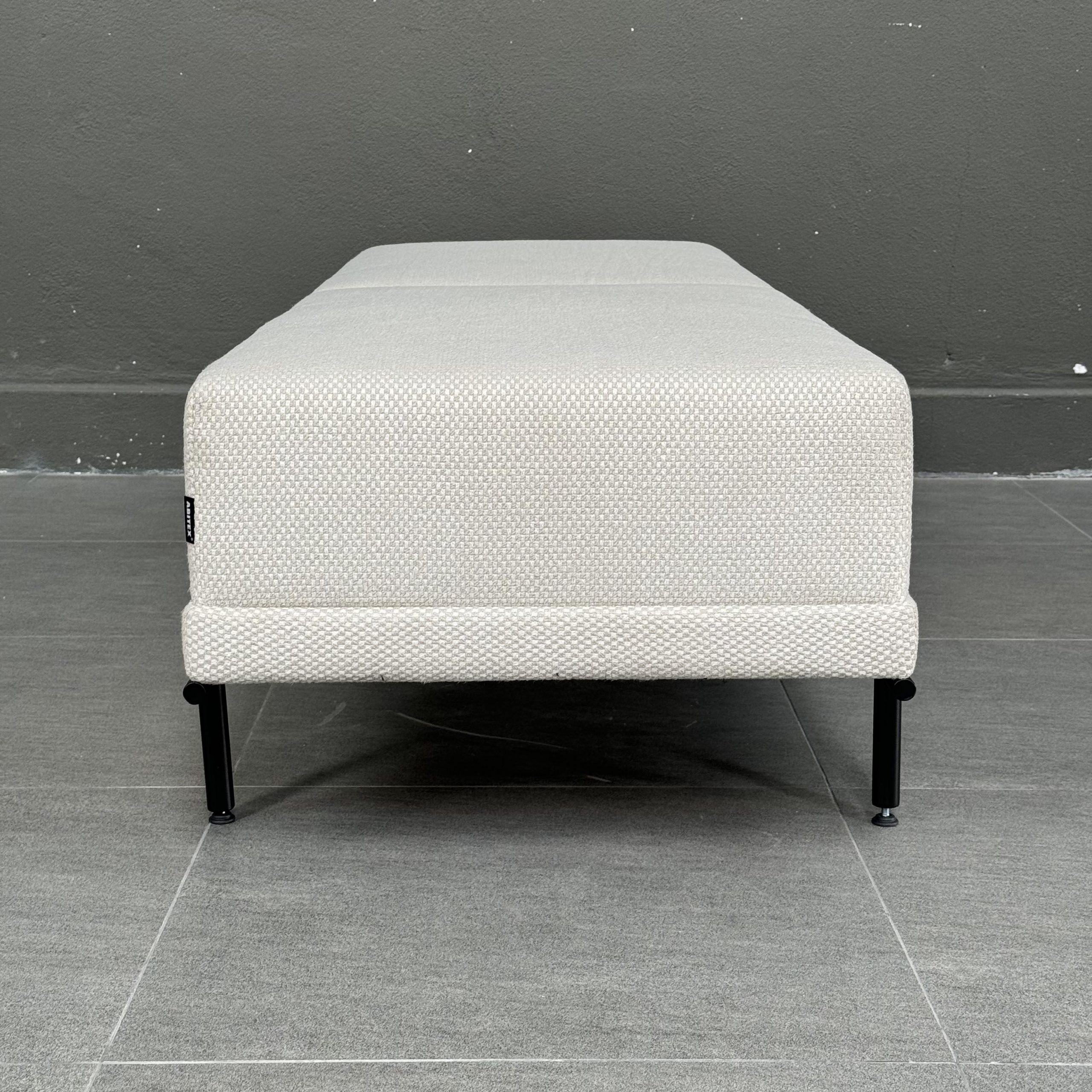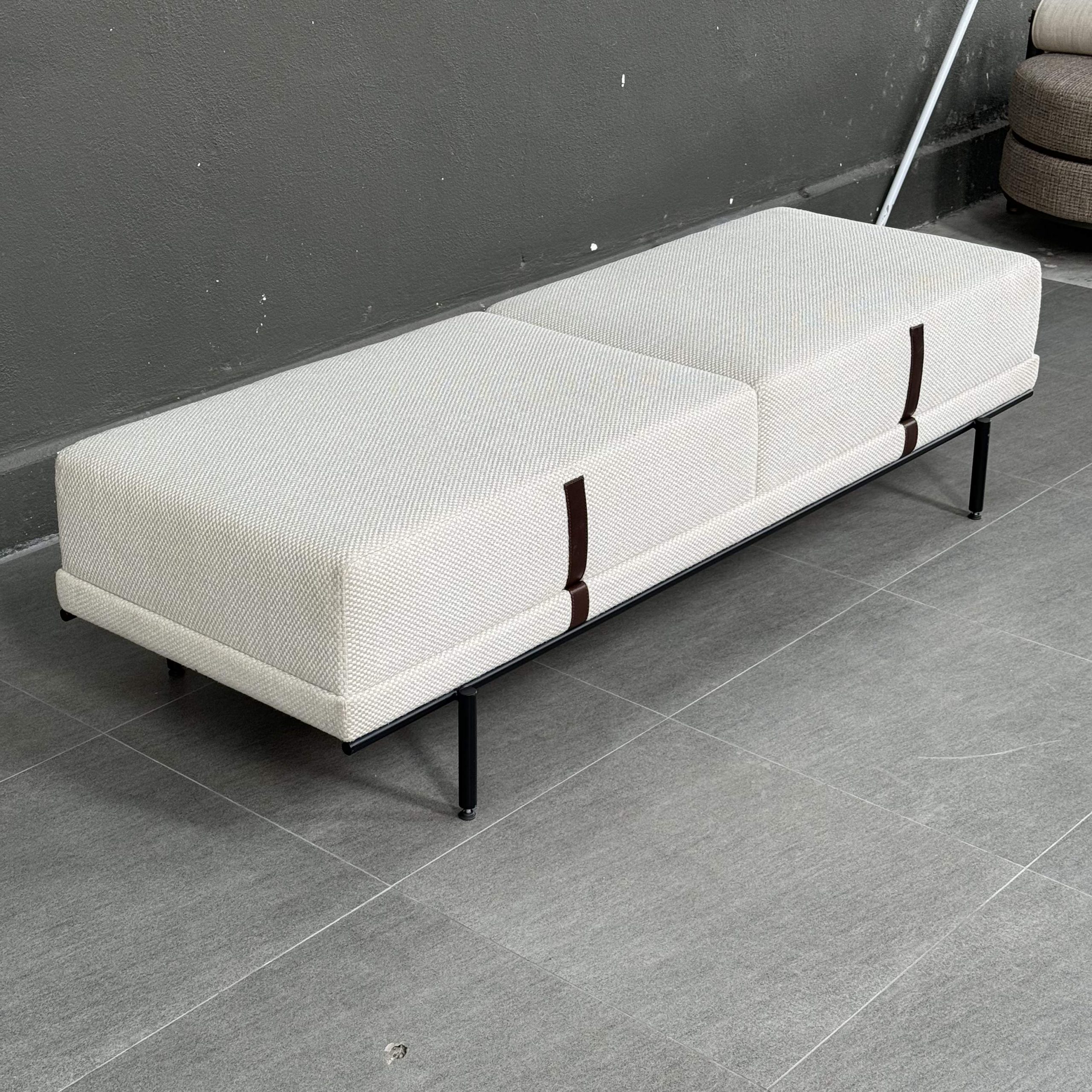 Bench upholstered in fabric with mild steel eposxy black leg