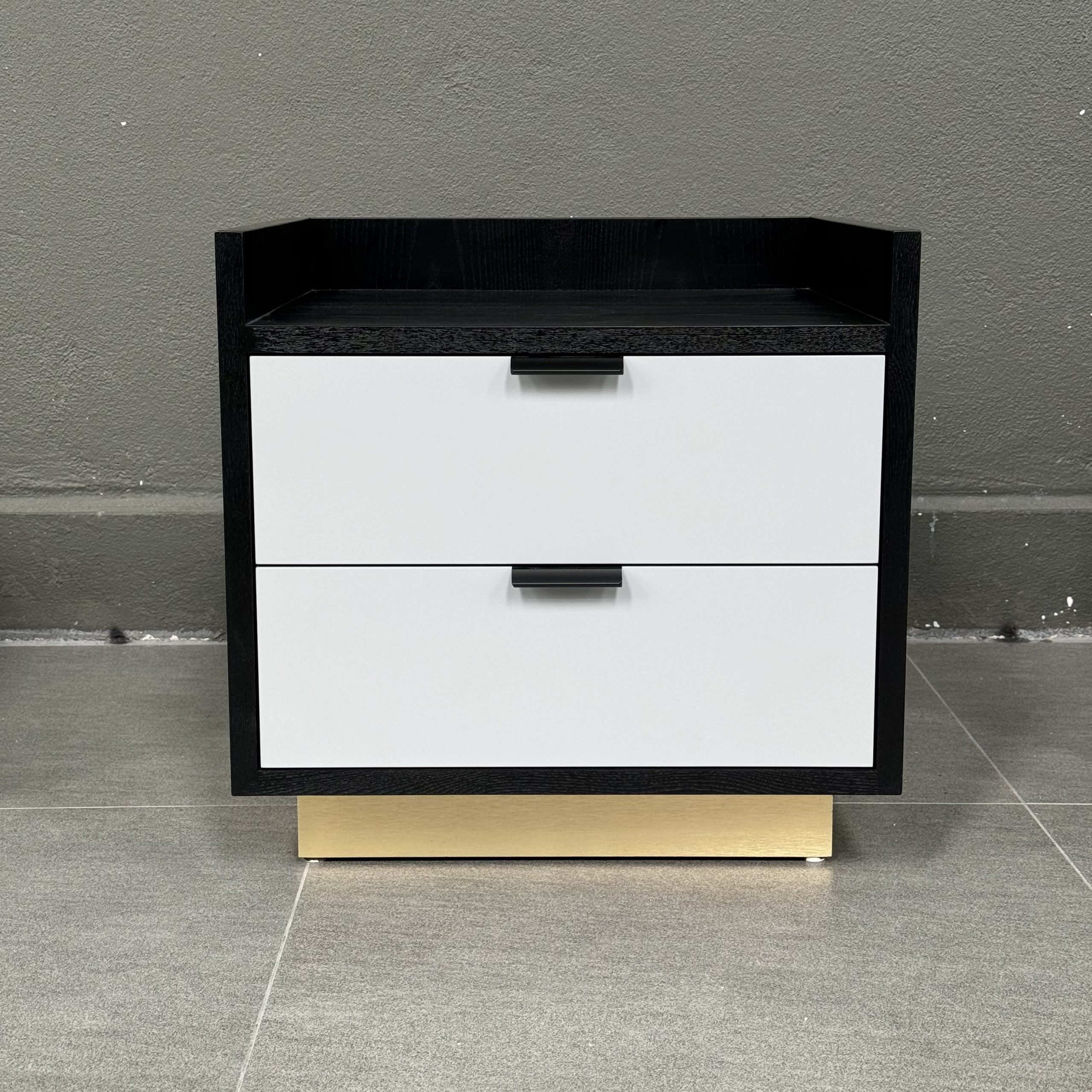 Side Table with drawer in Ash veneer wood spray paint, leg in laminate bronze.
